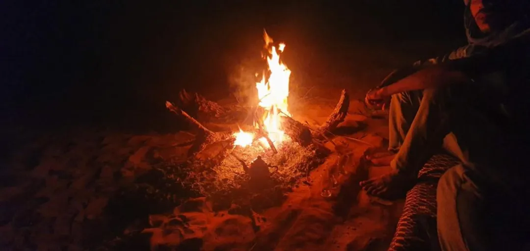 A unique and unforgettable moment was our first dinner in the desert, in the dark, prepared by Ahmed over the fire. The heat of the flames contrasted with the chill of the night, which had replaced the warm wind of the day. Above our heads, the Milky Way could be seen.